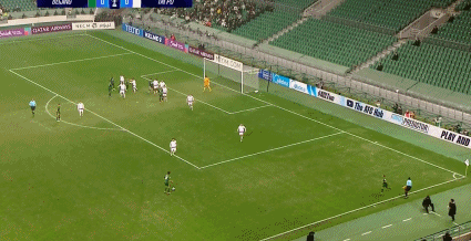 45’国安连续传递造成大埔门前混乱,法比奥倒钩打门打偏